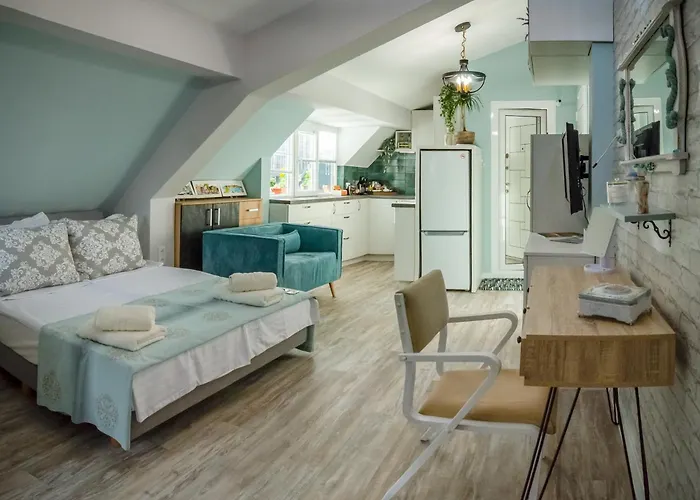 The 1-room Bella Apartment is located in the Nesebar New Town district, not very far from Muzeum Archeologiczne w Nessebarze. Situated approximately 20 minutes' walk from The Church of St. Stephen, the apartment provides guests with cleaning amenities, such as a washing machine.